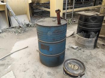 存在问题:1.桶装柴油存放在露天生产区;